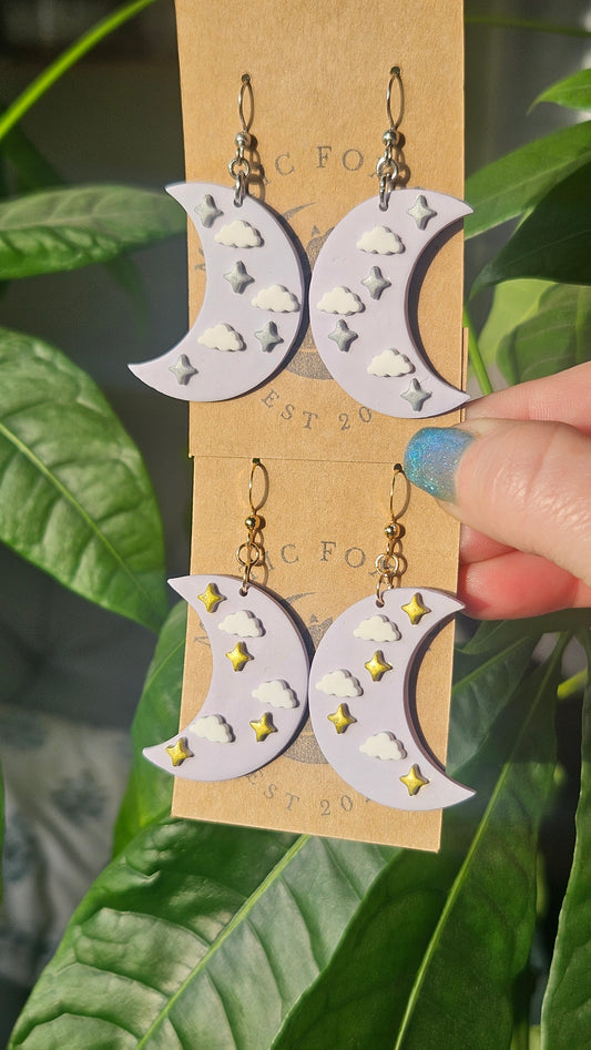 Celestial Pearl Fairy Wing Earrings | Iridescent Polymer Clay Jewelry