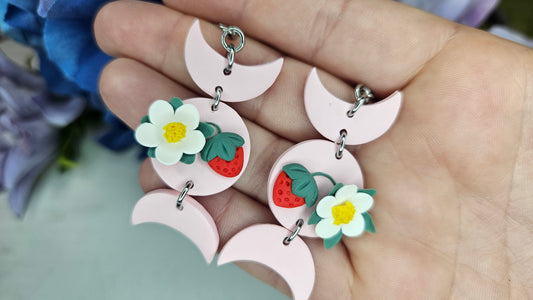 Strawberry Triple Moon Earrings | Summer Witchy Vibes