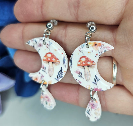Mushroom Moons | Cottagecore Lunar Forest Dangles