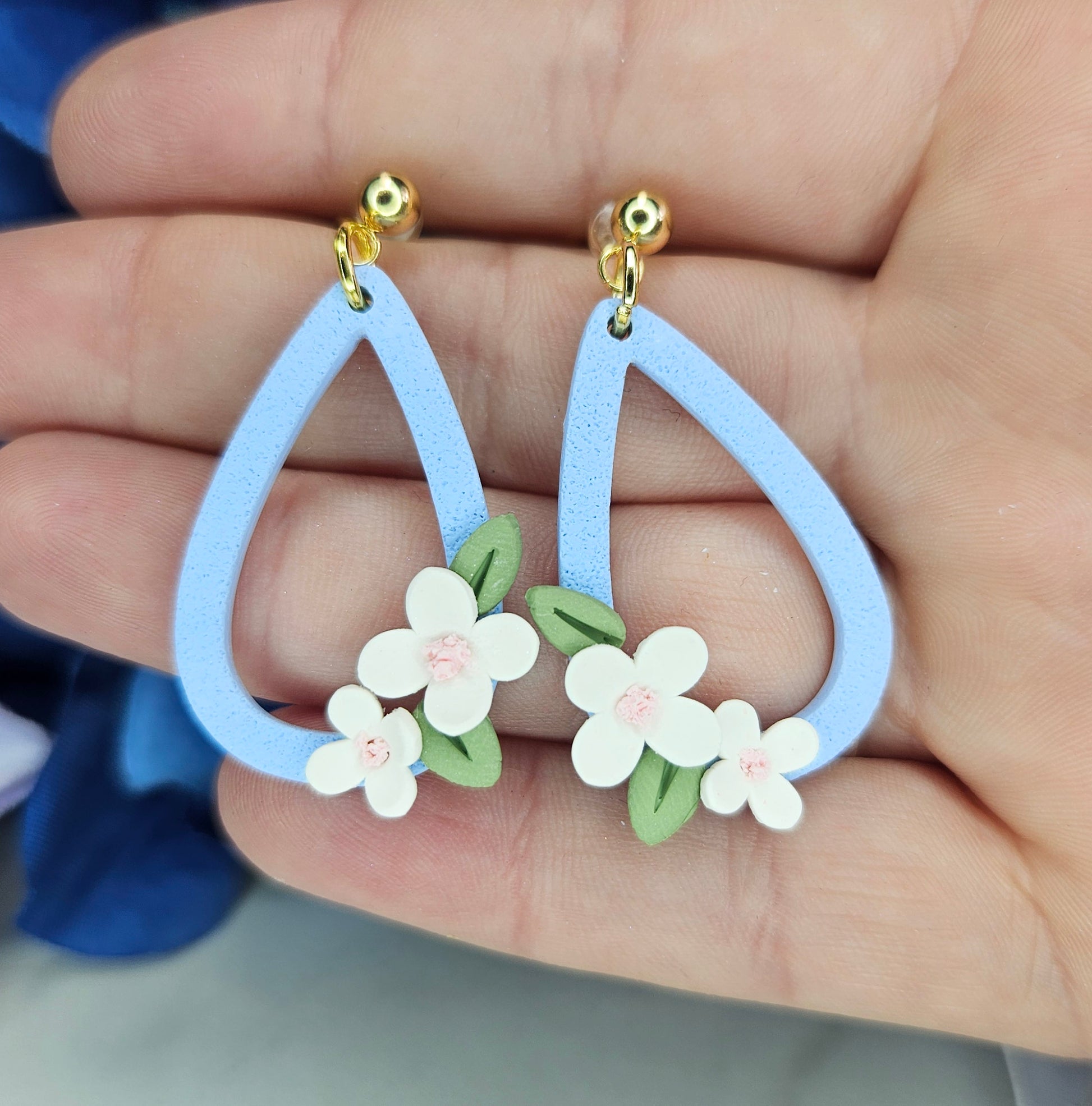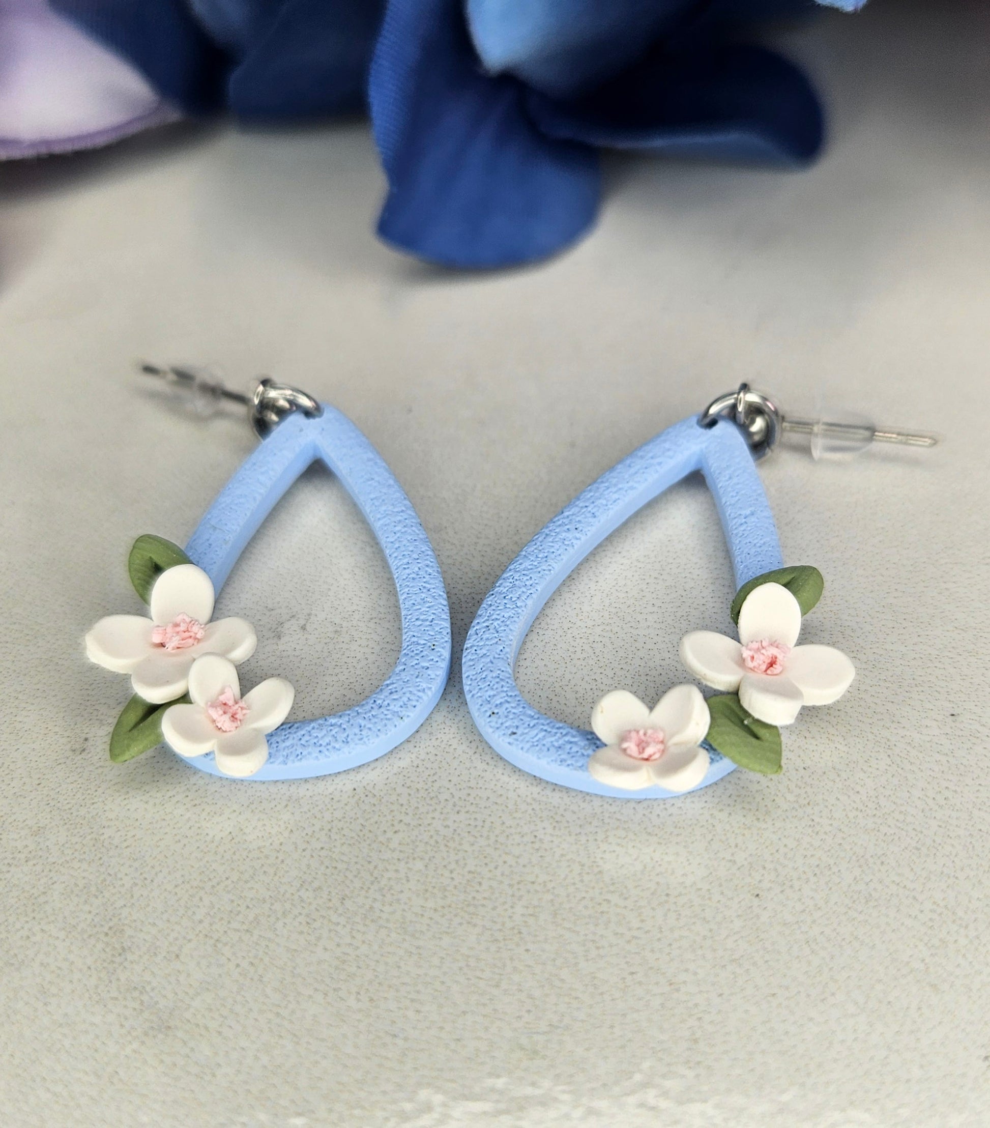 Dainty Summer Blossom Teardrop Earrings – Blue Pastel Floral Dangles