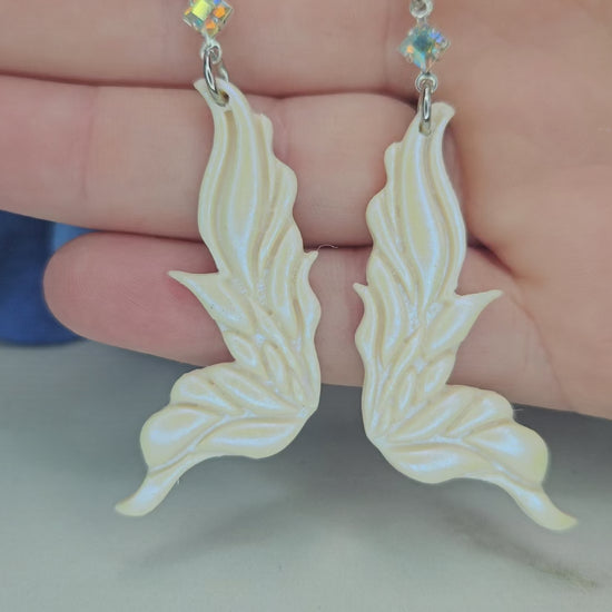 Celestial Pearl Fairy Wing Earrings | Iridescent Polymer Clay Jewelry