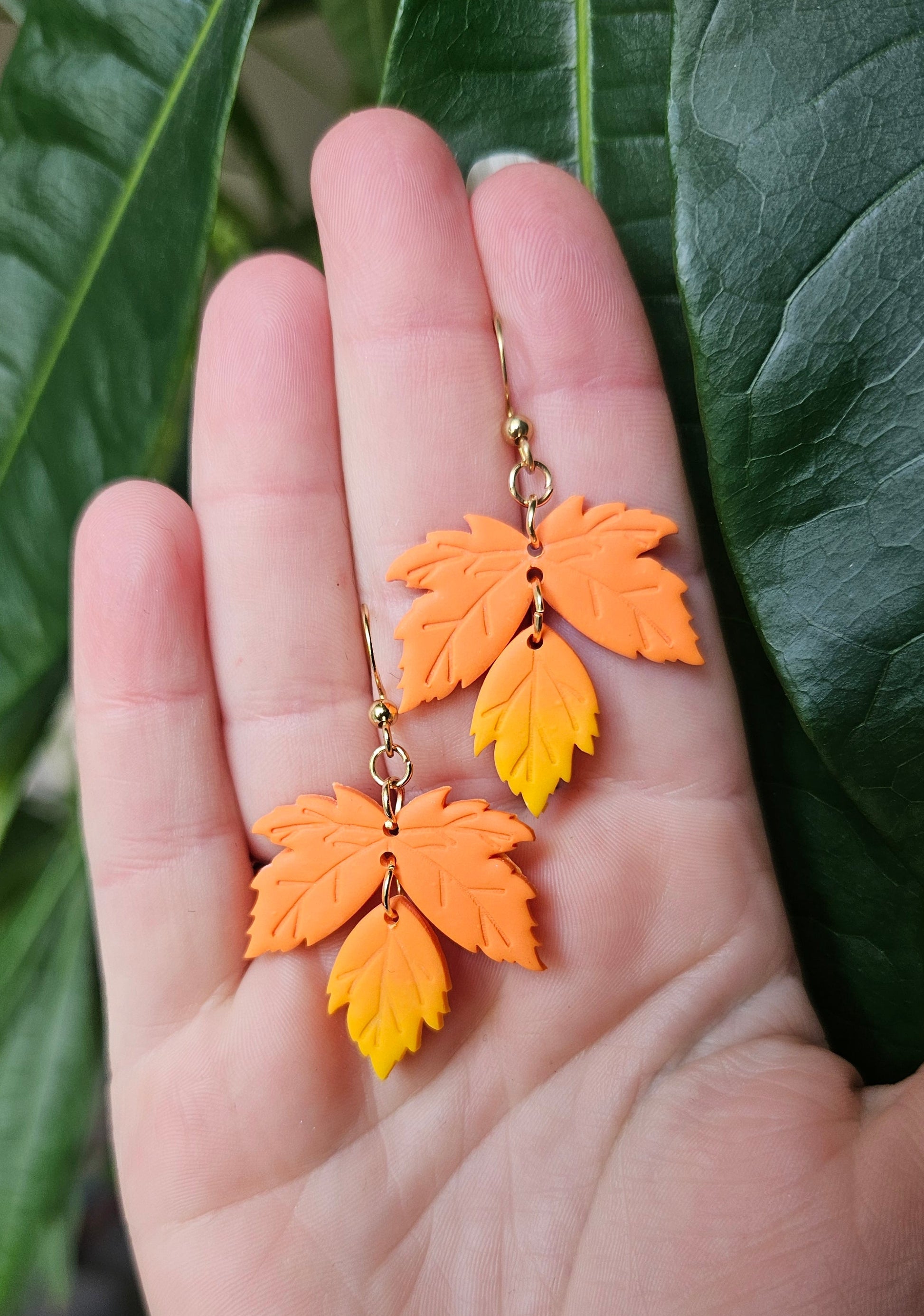 Celebrate the beauty of fall with these Autumn Glow Leaf Earrings. Each pair is handcrafted from polymer clay and features cascading orange and golden-yellow leaves that capture the warm, cozy hues of the season. Lightweight and full of movement, these earrings bring a touch of autumn magic to any outfit.